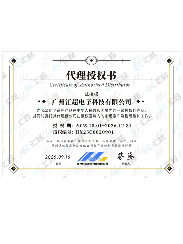 匯超電子-潤(rùn)石代理授權(quán)證書(shū)